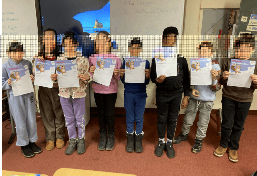Im Schuljahr 2025/26 haben acht Kinder der Klasse 3b erfolgreich am Informatik-Biber teilgenommen.