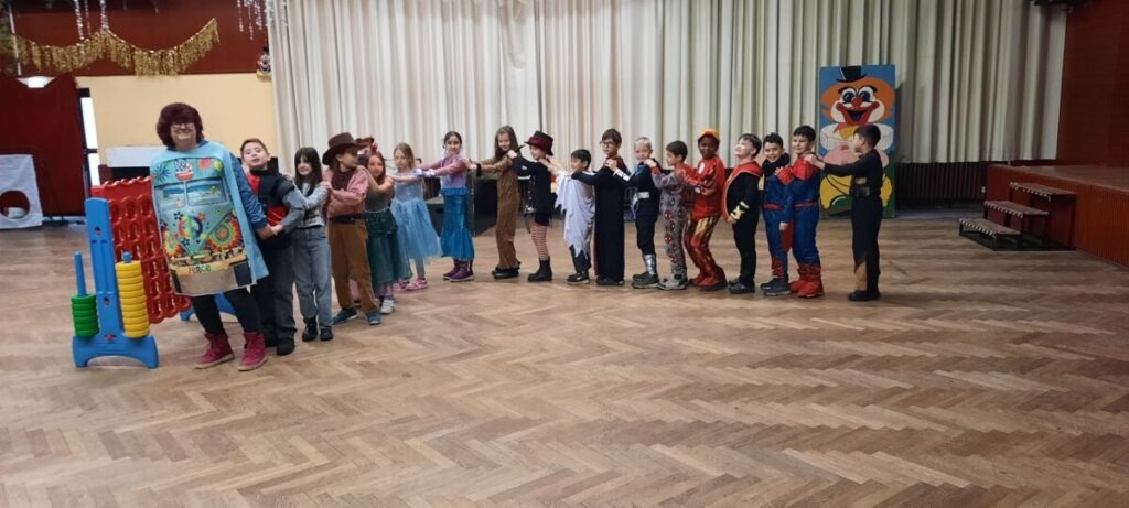 Auch in der Schule wurde kräftig gefeiert. Alle ersten Klassen verwandelten das Schulgebäude in eine fröhliche Partymeile. Vom Spieleparcours bis zur Polonese war für alle etwas dabei. Es wurde gelacht, getanzt und gemeinsam gefeiert.